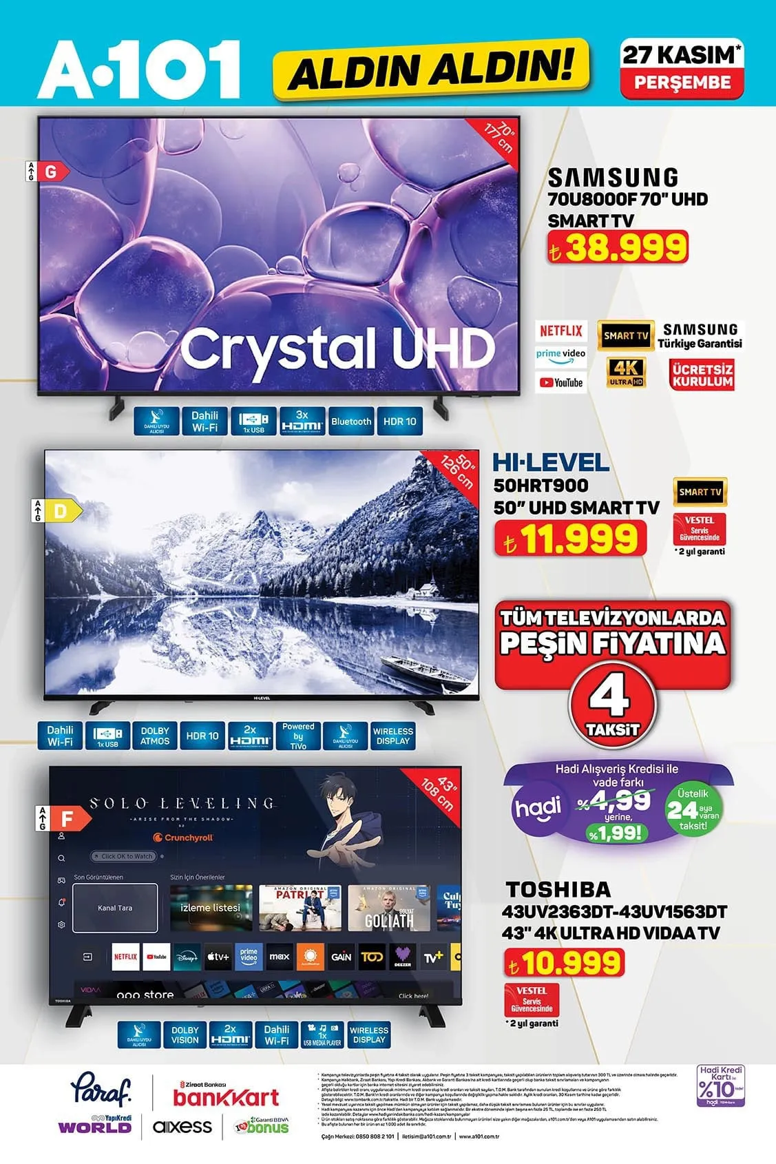 A101’in 27 Kasım tarihinde satışa sunacağı kimi ürünlerde hadi veresiye ile şimdi al iki ay sonra öde fırsatı sunulurken, katalogda yer alan tüm ürünler şu şekilde: